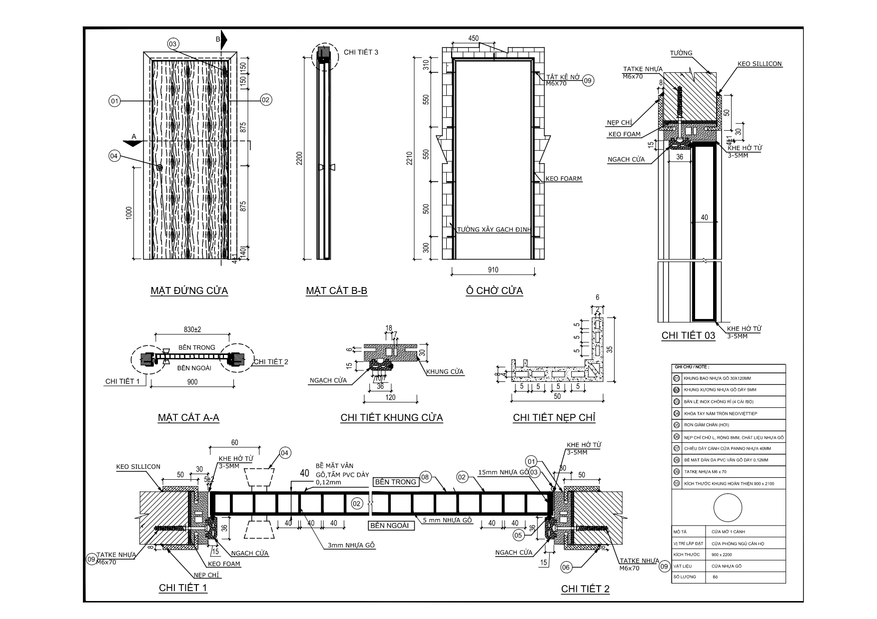 - Cửa thông phòng Composite, thi công khung đúc bằng cách chèn hồ hoặc bắn vít. Khung đúc này chỉ có một loại duy nhất là 105mm sử dụng cho tường từ 100-105.