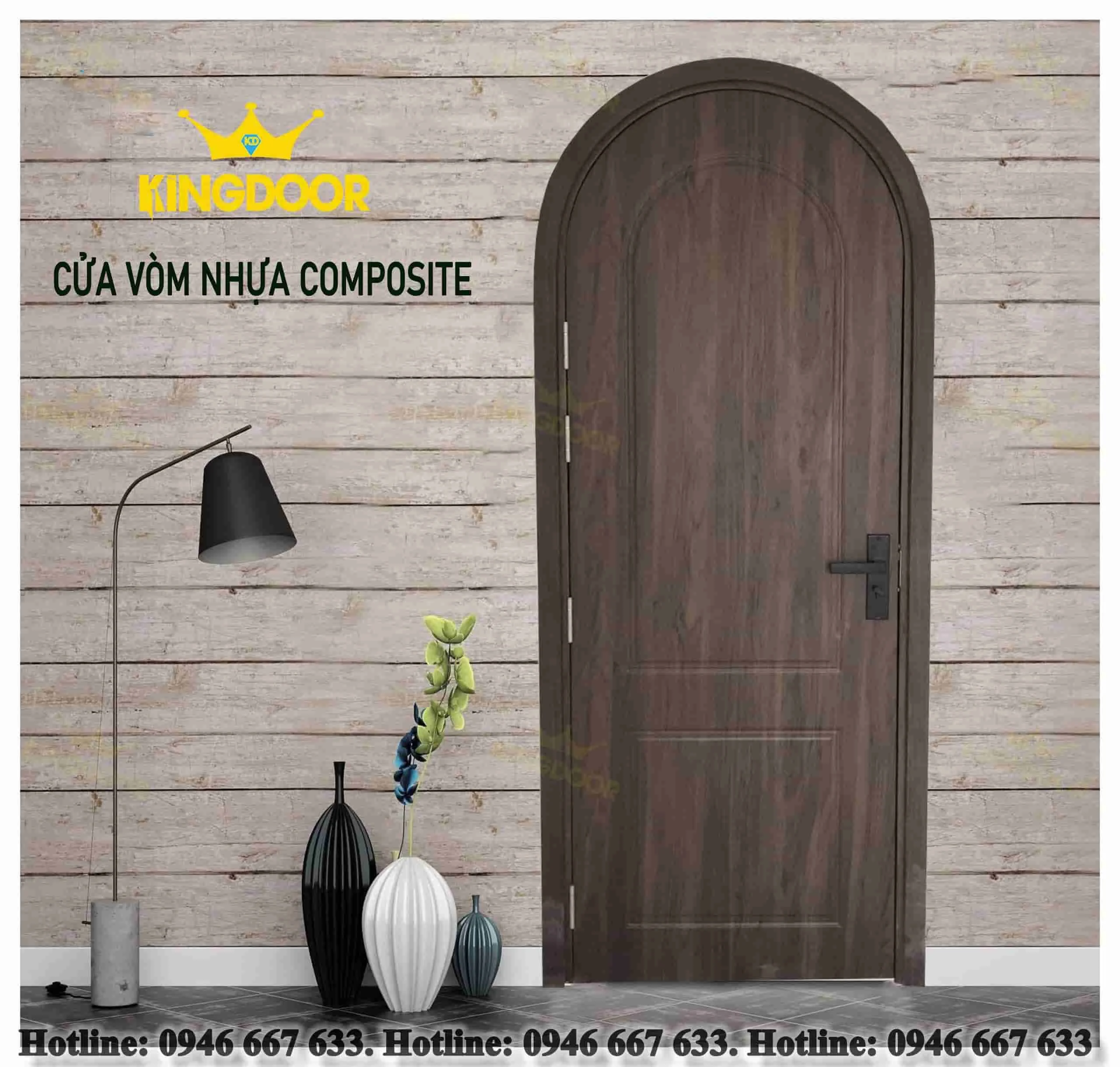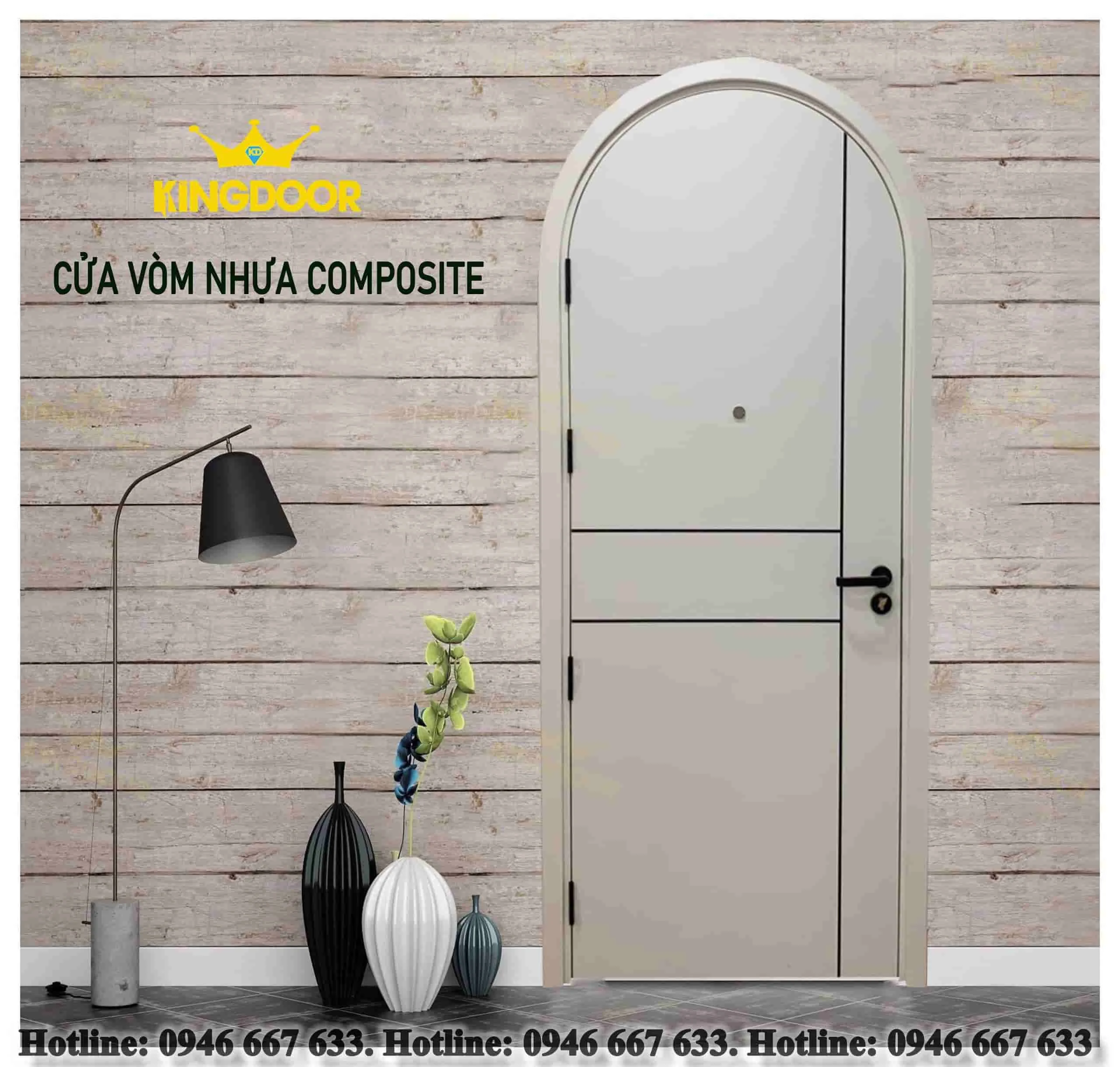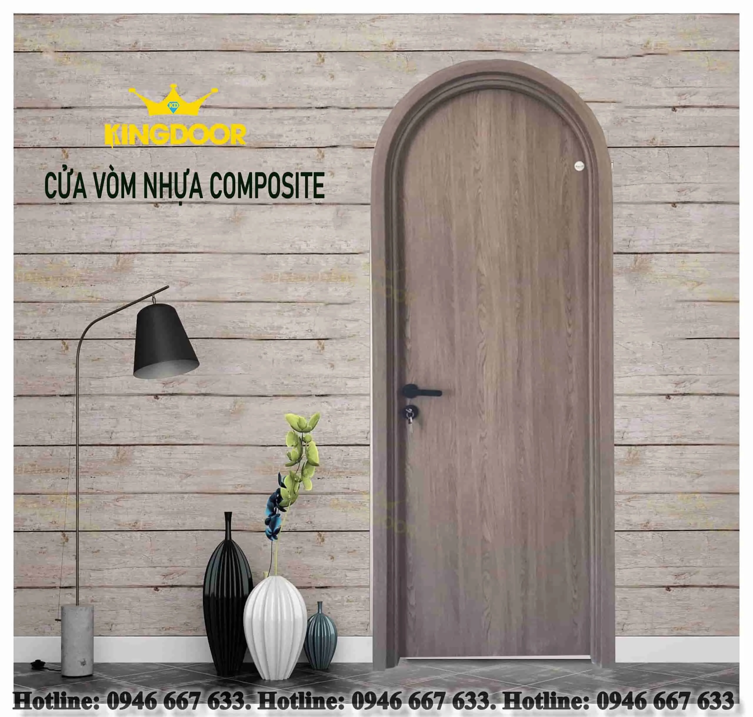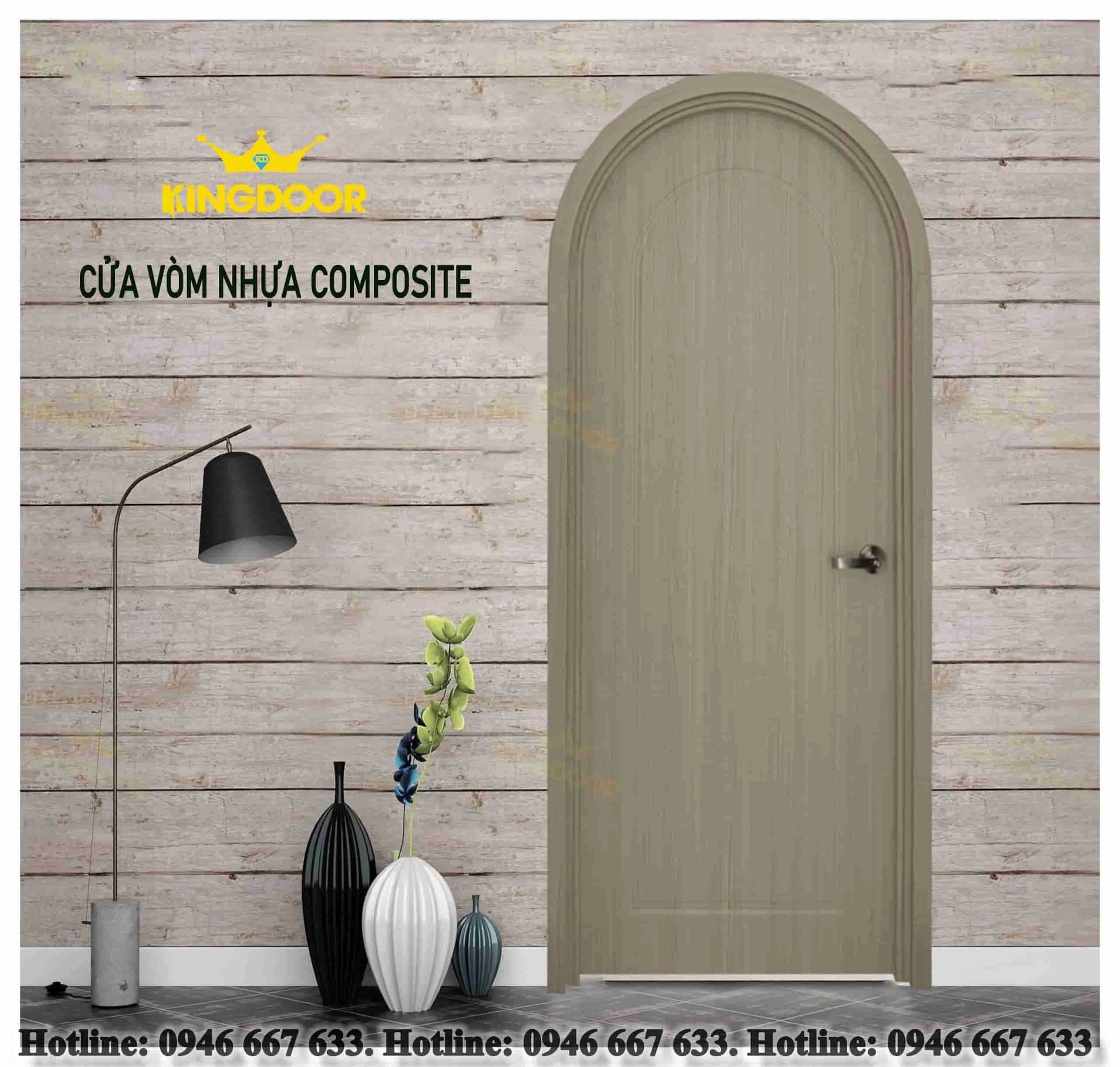 + Cửa vòm nhựa Composite được làm từ chất liệu nhựa và bột gỗ, được đem đúc ở nhiệt độ cao nên rất là cứng cáp, bền bỉ, chắc chắn.