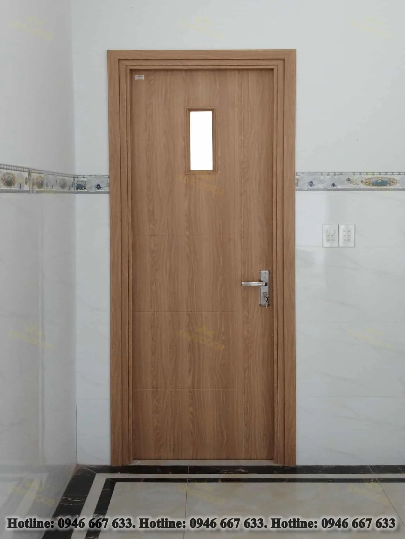 Cửa nhựa Composite phủ da – Ô kính Kích thước: 900 x 2100mm Khung bao chuẩn 45 x 90mm Độ dày cánh 40mm | Bộ | 3.300.000 |