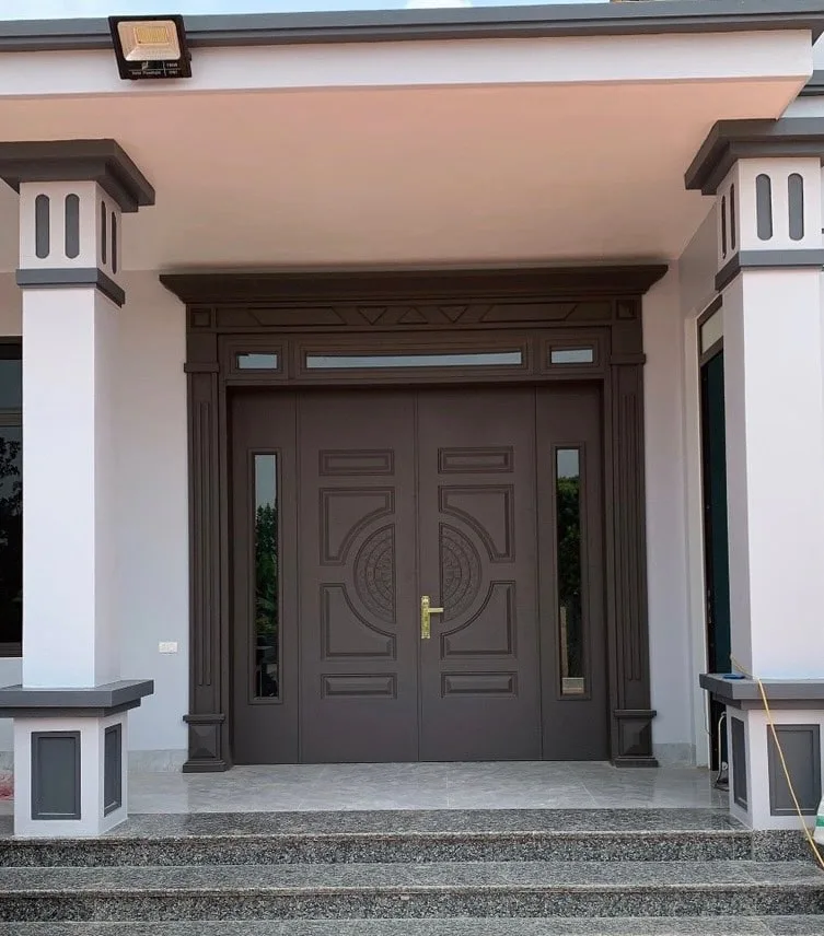 Báo giá chi tiết trọn bộ cửa thép vân gỗ 2 cánh lệch